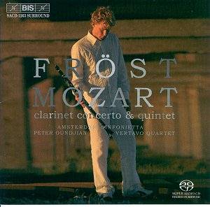 As to the music performing itself, it is certainly true that the scores of Mozart are so perfectly suited to the instruments and the style that tempo and timing vary hardly at all among the various versions. The music breathes so naturally that one hardly ever hears a "slow" or "fast" performance of anything by Mozart. Mr. Fröst plays with excellent tone, and great feeling and intelligence. His technique is gentle and very legato; he never presses the instrument into its metallic range. He is capable of magical pianissimos. His cadenzas have an odeur of Debussy about them, but at least there are cadenzas. He is a very pretty blue-eyed blonde boy and we gets lots of pictures of him, colour and B/W, from various angles. He receives excellent support from orchestra and quartet and superb recording from BIS, as we have come to expect. The Vertavo quartet has more fun with their part, put more of their heart into it, than any group I’ve ever heard play this music.