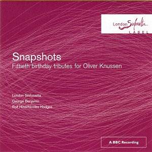 2002 saw the fiftieth birthday of Oliver Knussen, a musician who has been more involved than most with the Sinfonietta in recent years, including a period as the ensemble’s Music Director from 1998 to 2002. In her booklet note introduction to the disc, Gillian Moore, the Artistic Director of the Sinfonietta, comments that the original idea was to ask a handful of Knussen’s closest composer friends to write brief birthday pieces for him. However, "word got round" and before they knew it they were having to draw the line at thirteen contributions. Subsequently, the decision was taken that this could form an appropriate double celebration of both one of our most revered musicians and the launch of the new label.