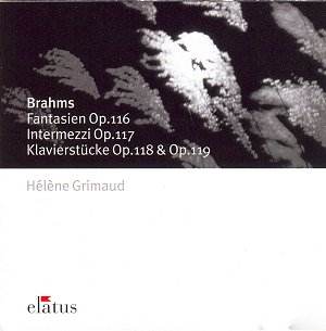 This Elatus reissue of a mid-1990s Erato disc is something of a mixed bag. I suppose the first positive thing that struck me was the fact that all these major late pieces have been squeezed on to one (upper) mid-price disc, which is actually pretty rare in the current catalogue. It relies on fairly brisk tempi and the odd missed repeat to do it, but makes excellent value, as most of the competition splits them over two discs and adds extra items. Mind you, two of the best rivals are on a Philips Duo and an EMI Double Forte, so the price difference is minimal, and you do get the extras, usually the Op.79 Rhapsodies and Eight Pieces Op.76.