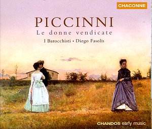 Roman society gave Piccinni’s little farce, The Revenge of the Women an enthusiastic welcome. It was first performed in the Teatro alla Valle, Rome during the Roman Carnival in 1763. The action takes place in and around a pretty country villa near Bologna. Briefly the story concerns the love of two young girls: the simpering (yet ultimately more enterprising) Lindora and the bookish Aurelia for Count Belleza. To say that Belleza is vain would be an understatement; he would make Narcissus look modest. When the girls try to woo him with flowers and laurels, he scorns them swearing that all women are mendacious, untruthful, deceitful and insincere. Of course the girls are furious and swear vengeance. They enlist the cowardly Ferramonte, Lindora’s uncle, who adores Aurelia, to be their champion. The Count and Ferramonte try all sorts of excuses not to fight and at length the headstrong Aurelia seizes Ferramonte’s sword and attacks the hapless count who cringes under her ferocity. Of course love wins out in the end and the ladies get their men as they all finally chorus: "… three cheers for women, the bringers of joy."