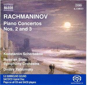 But the Third Concerto is an entirely different animal. By now Rachmaninov has definitely lost his innocence. Here the artists come into their own; by the end of the first movement cadenza of the Third Concerto Scherbakov had grabbed my by the throat and wrung me out, and left me on my feet cheering. Here the slightly exaggerated virtuosity only builds on the drama, and a little more "surging" in the melodies helps warm a concerto that some find a little cool, a little intimidating. I can recommend this as at least as fine a performance as I’ve ever heard.