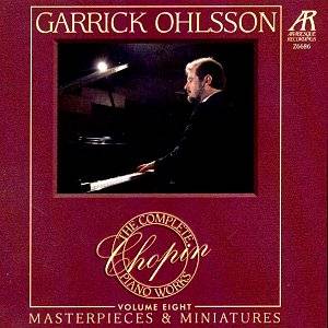 CHOPIN (1810-1849) The Complete Chopin Piano Works, Volume 8 Fantasy for piano in F minor/A flat major, Op. 49 Berceuse for piano in D flat major, Op. 57 Barcarolle for piano in F sharp major, Op. 60 Bolero for piano in C major/A major, Op. 19 Tarantelle for piano in A flat major, Op. 43 Prelude for piano in C sharp minor, Op. 45 Allegro de concert for piano in A major, Op. 46 March funebre in C minor Op.72 No.2 Ecossaise for piano No. 1 in D major, Op. 72/3 Ecossaise for piano No. 2 in G major, Op. 72/3 Ecossaise for piano No. 3 in D flat major, Op. 72/3 Variations for piano in A major "Souvenir de Paganini," KK IVa/10 (spurious) Contredanse for piano in G flat major (spurious), KK Anh.Ia/4 Moderato for piano in E major, KK IVb/12Cantabile for piano in B flat major, KK IVb/6 [Feuille d’album in E major] Largo for piano in E flat major, KK IVb/5 Fugue for piano in A minor, KK IVc/2 Recorded in 1995 at the Recital Hall in the Performing Arts Centre, Purchase College, State University of New York |