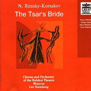 When I approach a recording of an opera I don’t know at all, I subject it to the cruellest of tests: I make no attempt to follow the story, and just put the records on and let them play through while I work on something else. I dare the music to get and keep my attention, and this opera passed this test very well. The opera opens with a turbulent overture reminiscent of the composer’s early symphonies — the orchestral style throughout is much more classical in feel, avoiding the lush orientalism of Coq d’Or. We are at once gripped by Grigory Gryaznoy’s powerful and beautifully sung opening soliloquy. The polyphonic choruses are enthusiastic; one of them uses the familiar hymn from the coronation scene from Mussorgsky’s Boris Godunov. The arias are lyrical and entertaining even without knowing the text, and as usual with Russian recordings of this period the words are so clear you can see the Cyrillic text pass by in your mind even if you don’t know all the words. All in all, this work is enjoyable as a Russian symphony, as absolute music, which is a good thing, since the plot of The Tsar’s Bride could almost be a satire on gruesome Russian historical tales.
