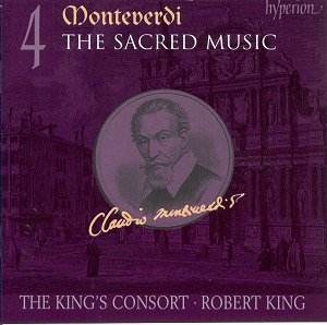 MONTEVERDI (1567-1643) The Sacred Music: Vol. 4 Laetatus sum I [6:37] Salve Regina [4:20] Domine, ne in furore tuo [2:45] Salve Regina I [8:39] Dixit Dominus II [5:26] Sanctorum meritis II [3:20] Adoramus te, Christe [4:35] Beatus vir [8:19] Exulta, filia Sion [5:07] Magnificat II [9:26] Salve, o Regina, o Mater [5:00] Laudate Dominum omnes gentes III [4:27] Carolyn Sampson (sop); Rebecca Outram (sop); Cecilia Osmond (sop); Daniel Auchincloss (high tenor); Rogers Covey-Crump (high tenor); Charles Daniels (tenor); James Gilchrist (tenor); Peter Harvey (bass); Robert Evans (bass) The King’s Consort/Robert King rec. St Jude-on the-Hill, Hampstead Garden Suburb, London, 12-18 Feb 2004. DDD |