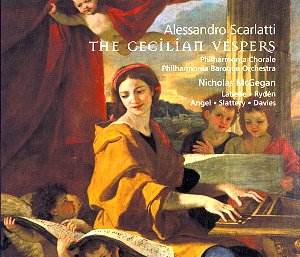 This effect has now hit Alessandro Scarlatti; recent scholarship has enabled Nicholas McGegan and his Philharmonia Baroque Ensemble to make the first complete recording of Scarlatti’s St. Cecilian Vespers. Scarlatti wrote a number of works for the feast of St. Cecilia, including a Mass, various antiphons and hymns and this setting of the vespers service. The vespers service attracted many baroque composers, but generally services were assembled from a variety of musical sources; during the baroque period there was little concept of a coherent vespers service written by a single composer in the same way that a mass would be. Remarkably, Scarlatti produced this complete vespers service, for Cardinal Acquaviva and his newly consecrated Church of St. Cecilia in Trastevere, Rome. We know that music by Scarlatti was performed there in 1720 and parts of the St Cecilian Vespers were performed in November 1721. But we don’t really know whether the entire service was performed in one go, or whether it was simply mined as a source book.