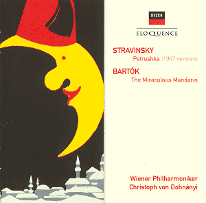 Petrushka is a work that, for all its colour, definitely has a dark side. However, this is as nothing compared to Bartók’s sinister and macabre score, The Miraculous Mandarin. As you may gather from the inclusion of a choir in the artist’s roster, this is a recording of the complete ballet score, with its rather extravagant use of a wordless chorus briefly towards the end. If anything I think that this score suits Dohnányi even better than Petrushka. Of course he has Hungarian roots, and he seems to be completely at home in the idiom of Bartók’s music. He gets the VPO to play with great intensity, which means that the three Decoy Games, all helpfully tracked separately, are portrayed vividly. The entry of the Mandarin himself is a powerful moment and the girl’s subsequent attempt to seduce him is laid out in lascivious detail, the passage building to a steamy climax. Then the Mandarin’s pursuit of her is thrillingly articulated, with the snarling menace of the wind and brass playing a notable feature. The whole grotesque story is reported by the Decca engineers in superb sound and when the organ is added again to the scoring (track 11, 0’42") it’s an overwhelming addition to the texture. Similarly, the contribution of the chorus (track 14) is expertly balanced by both conductor and engineers.