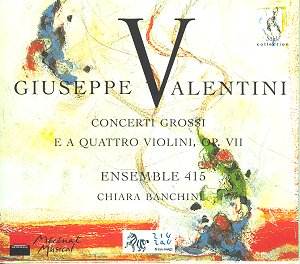 In light of a career that included such successes as study with Giovanni Bononcini, service under virtually all the major Roman nobility, consideration as Corelli’s biggest rival, and eventual induction into the Academia Arcadiana, one cannot help but wonder why the music of Giovanni Valentini fell so quickly into neglect and, until recently, has remained there. After experiencing this music, the question becomes much more intriguing. This recording offers six of Valentini’s Opus 7 concerti grossi, including number. 11, the Concerto for Four Violins that is often considered to be his masterpiece. In his liner notes, David Plantier explains that, for Valentini, the objective was originality and innovation. He even went so far as to claim in its preface that in writing Opus 7, he strove to create a new style. When this claim is put to an aural test, Valentini’s success is immediately apparent. These concerti exhibit a formal fluidity that is unfound elsewhere. Each movement of each concerto embodies its own unique Affekt; however, they ease gracefully into each other and combine forces to create total, coherent works. Many of these movements are unquestionably dances. Others, though, seem to take their inspiration from folk music and even French recitative. This is, without a doubt, an eclectic style of composition and is one not to be missed.