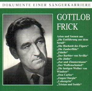 Gottlob Frick Wolfgang Amadeus MOZART (1756-1791) Die Entführung aus dem Serail (1782) - Wer ein Liebchen hat gefundena [2:25]; Solche hergelaufnen Laffena [4:18]; O wie will ich triumphierenb [2:24]; Le nozze di Figaro (1786) – La vendettac [2:46]; Die Zauberflöte (1791) - O Isis und Osiris d[3:20]; In diesen heil’gen Hallene [4:40] Ludwig van BEETHOVEN (1770-1828) Fidelio (1814) - Hat man nicht auch Gold beinebenf [2:57] Gioacchino ROSSINI (1792-1868) Il barbiere di Siviglia (1816) – La callunia è un venticellog [4:13] Jacques Fromental HALÉVY (1799-1862) La Juive (1835) – Si la rigeurh [4:08] Albert LORTZING (1801-1851) Zar und Zimmermann (1837) – O sancta justitiai[6:25]; Der Waffenschmied (1846) – Auch ich war ein Jünglingj [4:00] Otto NICOLAI (1810-1849) Die lustigen Weiber von Windsor (1849) – Als Büblein kleink [4:21] Giuseppe VERDI (1813-1901) Don Carlos (1867) – Ella giammai m’amòl [7:30] Peter Ilyich TCHAIKOVSKY (1840-1893) Eugene Onegin (1879) – Ein jeder kennt die Lieb’ auf Erdenh [5:17] Richard WAGNER (1813-1883) Lohengrin (1850) - Gott grüß euch, liebe Männer von Brabantm [2:54]; Tristan und Isolde (1865) – Tatest du’s wirklich?n[12:45] abcdehijklBerlin Symphony Orchestra/abcdghijklWilhelm Schüchter, eArthur Grüber; fVienna Philharmonic Orchestra/Wilhelm Furtwängler; mOrchester des Nordwestdeutschen Rundfunks, Hamburg/Wilhelm Schüchter; nLeipzig Gewandhaus Orchestra/Franz Konwitschny. mALP1095, nUrania URLP202. Rec. September ab23rd, ijk24th, fOctober, lJune 13th, mJuly 1953, March c3rd, d27th, h15th, eApril 28th, 1954, nOctober 1950. All tracks sung in German. From Electrola aEH1443, b7EG8403, cgDB11563, deDB11567, hDB11566, hEH1445, jkEH1444, lDB11555, HMV fALP1130, ADD mono |
