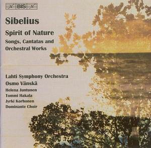 Jean SIBELIUS (1865-1957) Spirit of Nature: songs, cantatas and orchestral works Overture in E major, JS145 (1891) [11:17] Scène de ballet, JS163 (1891) [8:36]; Kullervon valitus from Op.7 for bass and orchestra (1892 rev. 1957) [2:17]*; Serenade, JS168 for baritone and orchestra (1894-5) [5:47]; I natten, Op.38 No.3 for baritone and orchestra (1903) [3:37]*; Impromptu, Op.19 [original* and final versions] for women’s chorus and orchestra (1902, rev 1910) [5:27] [6:57]; Pan and Echo, Op.53 (1906) [4:07]; Höstkvåll, Op.38 No.1 for soprano and string orchestra (1903 arr. 1904) [4:55]*; Hertig Magnus, Op.57 No.6 for soprano and orchestra (1909 arr. 1912) [3:35]*; Luonnotar, Op.70 for soprano and orchestra (1913) [8:50]; Väinön virsi, Op.110 for mixed chorus and orchestra (1926) [8:53] Dominante Choir Lahti Symphony Orchestra/Osmo Vänskä rec. Jan 2004 - Aug 2005, Sibelius Hall, Lahti, Finland. DDD * world premiere recordings Complete Sibelius Edition: Volume 58 |