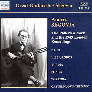 was a release made up of all of Segovia’s London recordings of 1949. Naxos has taken these and added the master’s 1946 New York recordings.