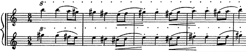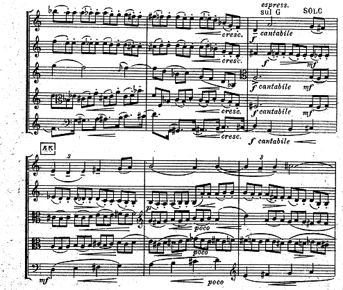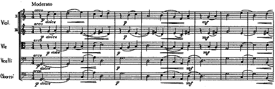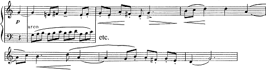 in the strings and harmonized in thirds,
