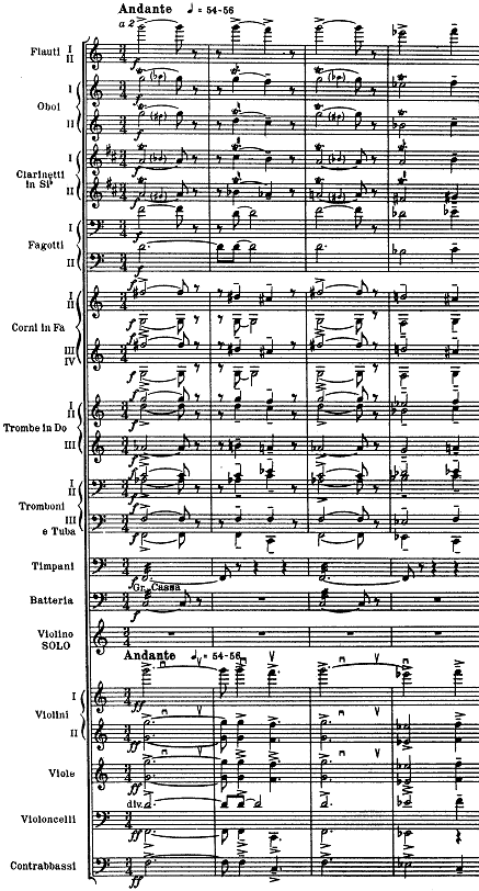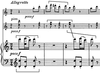 violins (against pizzicato "proz