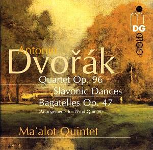 The other Slavonic Dances and the delightful Bagatelles come off just as well. But of course, one’s estimation of this disc will ultimately depend on how one feels about the Quintet’s version of the op.96 Quartet in F; usually known as the ‘American’, though that title is not given here. This is a late work, and a substantial one, as well as one of the composer’s best-known pieces of chamber music. I have to say I was totally won over, first again because of the sheer skill of Schäfer’s arrangement, and secondly by the musicianship with which the Ma’a lot invest their performance. Coming across this version without having prior knowledge of the string quartet original, one could easily take it for a wind piece. In fact, it was a clever choice, because the quartet has a certain naïve charm, a simplicity of utterance, which makes it ideal for this medium. The melodies are often folk-like pentatonic ones, and the textures do not have the density or complexity of some of Dvořák’s other chamber works.