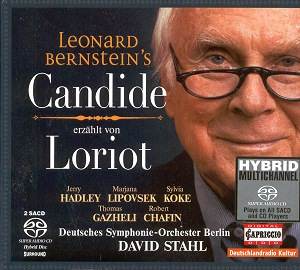Leonard BERNSTEIN (1918-1990) Candide – Comic Operetta in two acts (1956) [128:15] Libretto: Lilian Hellman and Richard Wilbur based on the novel by Voltaire Complete recording in English with additional spoken texts in German by Loriot Ernst Senff Choir, Berlin/Sigurd Brauns German Symphony Orchestra/David Stahl rec. live, Berlin Philharmonic Hall 20 March 2005. DDD |