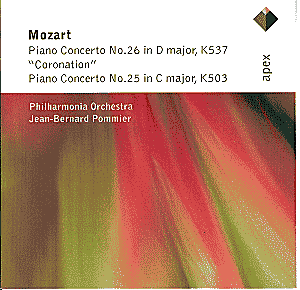 It's unclear where these performances fit into the greater scheme of things. Jean-Bernard Pommier's gentle attack produces tone which is consistently limpid but unvarying in color, and slightly under-articulated as well; though he inflects the second theme of the Coronation with enough rhythmic point. He understands the Mozart style, but otherwise doesn't seem to have much to say.