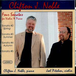 Clifton Noble will need a little introduction. Born in 1961 he studied at Amherst and at Smith Colleges and since 1987 he’s been a pianist at the latter college. He also plays traditional jazz and has made some recordings in this capacity. Noble has written numerous works for Smith’s choral forces and now here are some of his violin sonatas. The First, Winter, has not been included so we have in effect a Seasons-minus-one disc, supplemented by the untitled Fifth.