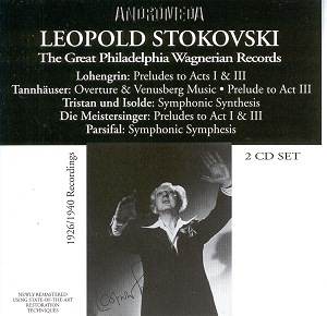 The Great Philadelphia Wagner Recordings Richard WAGNER (1813-1883) Rienzi (1842): Overture [11.03] (rec. November 1926 and January 1927) Lohengrin (1848): Prelude to Act I [8.13] (rec. October 1927); Prelude to Act III [3.15] (rec. March 1940) Tannhäuser (1845): Prelude and Venusberg Music [22.51] (rec. December 1937); Prelude to Act III (arr Stokowski) [10.21] (rec. January 1936) Parsifal (1879), Prelude to Act I [14.45] (rec. November 1936); Good Friday Spell [11.55] (rec. November 1936); Symphonic Synthesis (arr. Stokowski) [14.07] (rec. April 1934) Tristan und Isolde (1859), Symphonic Synthesis (arr. Stokowski) [35.36] (rec. March 1932) Die Meistersinger von Nürnberg (1867), Prelude to Act I [9.18] (rec. January 1936); Prelude to Act III [6.43] (rec. March 1932) Track list, including recording dates, no notes. Photo of conductor. rec. mono ADD. Re-mastered at 96kHz24Bit "using state of the art restoration techniques". |