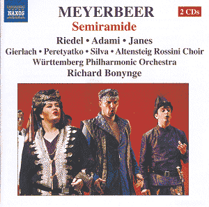However we do know that “Semiramide” did win a minor success when it opened at the Teatro Regio on 30 January 1819, incidentally receiving better reviews in the German than the Italian press. In the following year the opera was further staged in Bologna and Senigallia, re-titled now as “Semiramide riconosciuta”, and containing a certain amount of re-written material. Alas this version has completely disappeared, along with Meyerbeer’s original score. Only a contemporary manuscript copy of the first version survived, and this forms the basis for the current recording.