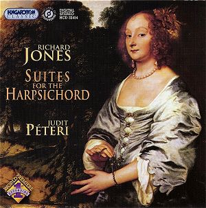 Richard Jones is one of the composers from that time. He is almost forgotten. Educated as a violinist, in about 1730 he was appointed leader of the orchestra of the Drury Lane theatre. A masque, possibly by Jones, was performed there in 1723. Unfortunately the music has been lost as have the performing materials for most of his other theatre compositions. His surviving oeuvre includes two collections with pieces for violin and bc, a solo cantata, some fragments from his theatre music in arrangements for keyboard and the 6 'Suites or Setts of Lessons' for harpsichord from 1732. Three of these have been recorded by Hungarian harpsichordist, Judit Péteri.