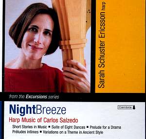 Salzedo’s music rewards attentive listening – most of what is recorded here is not at all the rather wishy-washy mood music which sometimes passes for music for solo harp. And at the hands (and feet) of Sarah Schuster Ericsson it gets the kind of performance it deserves, committed and serious, with enough panache to do justice to the flair and colour of the music but never giving way to mere flashiness. Ericsson’s control of dynamic contrast is particularly impressive; her instruments – she plays two Lyon and Healey harps, a Concert Grand 23 and a ‘Salzedo’ model – are well recorded in a spacious, but not over resonant, acoustic.