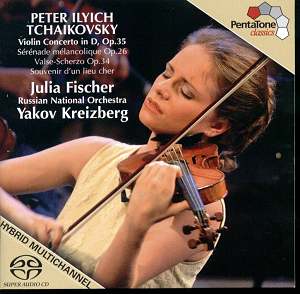 Not a week seems to go by without another Julia Fischer release from PentaTone. With this one she returns to the scene of her first discographic triumph with this label, her triptych of Russian concertos – Khachaturian, Prokofiev and Glazunov – and gives us an all-Tchaikovsky collection. The world is not short of recordings of the concerto, from Elman and Heifetz to the latest wunderkind but it’s not a work I much associate with German players. Certainly Kulenkampff’s 1930s slant on it was highly original but of well-known modern players only Hoelscher, Tetzlaff, Franz Peter Zimmermann and Mutter (twice) have essayed it on disc and none of them with any great success. I should add that PentaTone are in competition with themselves. The Tetzlaff recording is also available on this label with the same orchestra as this one, though conducted by Kent Nagano – it’s coupled with Lugansky’s performance of the composer’s Piano Concerto No.1.