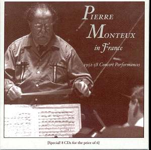 Music & Arts has now made another vast contribution to Monteux studies with this new collection. Its San Francisco box set Sunday Evenings with Pierre Monteux is a vast thirteen CD epic of incalculable interest, though I did attempt to calculate it on this site both in its original 10 CD set and in the expanded fuller edition (see review). This further offering gives us French concert performances made between 1952 and 1958. The news is pretty much all good. The sound is very, very much better than the Horenstein box set, devoted to that conductor’s Parisian performances and issued by M&A. True, the repertoire duplicates works that Monteux recorded, sometimes multiply, but there are eight pieces entirely new to his discography and that constitutes a major act of reclamation in itself. Additionally a number of the performances do shed a new slant on those familiar (or less familiar) commercial discs either in subtly reinforcing his sheer consistency of approach or allowing one to reflect on processes of absorption of his ideas by different orchestras.