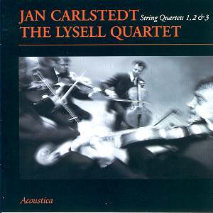 Carlstedt’s six string quartets were written between 1951 and 1998, thus spanning almost fifty years of his composing life. These stark facts say much for the importance that he obviously attached to the medium. Moreover, as demonstrated on an earlier recording (Acoustica ACCD-1008, that includes his early Sonata per archi Op.7:2), he wrote idiomatically and effectively for strings. Besides these works, his output also includes a very fine String Trio Op.5 (1955), a Sonata per Violino Solo Op.15 (1959), a Ballata Op.18 for solo cello (1961) as well as the imposing Metamorphosi per archi Op.42 (1987). His six string quartets represent an important facet of his output, and one in which his musical progress may be appreciated. At the time of his death in 2004, he had apparently completed his Seventh Quartet, and was at work on his Eighth and Ninth.