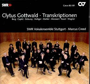 Clytus Gottwald - Transkriptionen Maurice RAVEL (1875-1937) Soupir – Three Poems by Stéphane Mallarmé [3:53] La vallée des cloches [6:20] André CAPLET (1878-1925) Trois Fragments du Miroir de Jésus:- Présentation [3:18] Agonie au Jardin [2:19] Résurrection [3:08] Olivier MESSIAEN (1908-1992) Louange à l’Éternité de Jésus [7:34] Claude DEBUSSY (1862-1918) Soupir [3:32] Alban BERG (1885-1935) Drei Lieder aus Sieben frühe Lieder:- Die Nachtigall [2:35] Im Zimmer [1:29] Traumgekrönt [3:30] Heinz HOLLIGER (b.1939) Zwei frühe Lieder nach Texten von Christian Morgenstern:- Vöglein Schwermut [3:43] Herbst [3:14] Richard WAGNER (1813-1883) Zwei Studien zu ‘Tristan und Isolde’:-