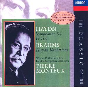 Symphony No. 101 in D major, Clock (1793-4) [25:46] Johannes BRAHMS (1833-1897) Variations on a theme by Haydn, Op. 56a (1874) [17:00] Wiener Philharmoniker(Haydn), London Symphony Orchestra (Brahms)/Pierre Monteux