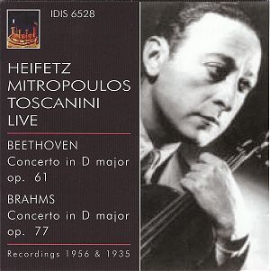 The recording of the Brahms is a different matter entirely. The big problem is that it sounds as if it was recorded with a condenser microphone - the kind you used to get with a Walkman. Here the sound recedes into the distance after a loud passage and gradually makes its way back towards you. Therefore the start is quiet - obviously it follows the applause as soloist and conductor walked onto the platform - but soon becomes clear. The first tutti is thrilling and full then away goes the sound and so on. Like Mitropoulos, once Toscanini sets a tempo it never wavers, except for rubato. Heifetz is more mellow, and more comfortable, in this music; after all, he was a violinist of the romantic school. All I can really say is that like the Beethoven the first movement is full of drama - with a cadenza at odds with the surrounding music. The slow movement is gorgeous but with a backwardly placed oboe. The finale full of fun.