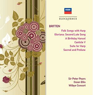 Britten) Two Scottish Folk Songs (arr. Britten) Gloriana - second lute song (arr. harp and tenor) CD 2 A Birthday Hansel Op.92 (original version) Canticle V: The Death of St Narcissus Op.89 Suite for Harp Op.83 Sacred and Profane – Eight Mediaeval Lyrics Op.91 Wealden Trio Sweet was the Song The Sycamore Tree A Shepherd’s Carol Sir Peter