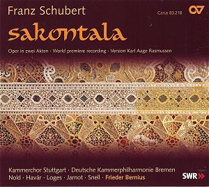While Schubert is a much admired composer and a large number of his compositions are acknowledged as works of genius, there is still a considerable number of his works that have been neglected. To this class, belong Schubert’s operas, which are almost entirely unknown. This is largely due, on the one hand, to generally poor libretti, often written by Schubert’s well intentioned friends who unfortunately lacked the necessary writing talent and on the other hand to the general belief that Schubert’s operas are dramatically ineffective. Therefore a reconstruction of an opera such as Sakontala is to be applauded and having this historic performance recorded live for posterity is a most welcome endeavour.