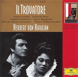 Leontyne Price (soprano) – Leonora; Franco Corelli (tenor) – Manrico; Ettore Bastianini (baritone) – Conte di Luna; Giulietta Simionato (mezzo) – Azucena; Nicola Zaccaria (bass) – Ferrando; Laurence Dutoit (soprano) – Ines; Siegfried Rudolf Frese (tenor) – Ruiz; Chorus of the Vienna State Opera.