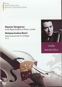This DVD, as indicated on the box, is a violin masterclass. The master here is Maxim Vengerov and the student a young lady by the name of Márta Déak, accompanied on the piano by Tadashi Imai. We watch and hear the young violinist play an extract of the first movement, Allegro, from Mozart’s third violin concerto, which lasts approximately ten minutes and then we get to witness Vengerov working with her on the interpretation of this same movement.