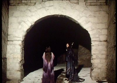 chilling. Bluebeard is framed in the ornate Gothic doorway with