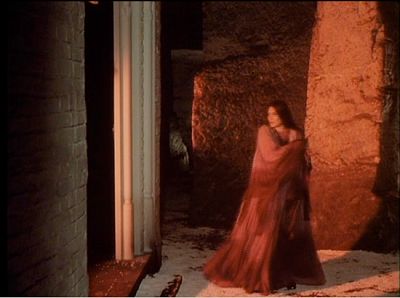 her high cheekbones, long, dark tresses and flowing robes strangely