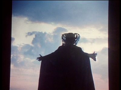 subsumed by white light, Bluebeard revolving slowly in silhouette
