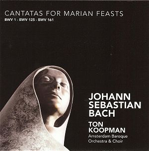 The disc with Cantatas for Marian Feasts contains “Wie schön leuchtet der Morgenstern” BWV 1, “Mit Fried und Freud ich fahr dahin” BWV 125, and “Komm, du süße Todesstunde” BWV 161. Soprano Deborah York (1), altos Bogna Bartosz (125) and Elisabeth von Magnus (161), tenors Jörg Dürmüller (125) and Paul Agnew (1, 161), and of course Klaus Mertens (1, 125) offer singing at a high, if not exalted, level throughout. In BWV 1 Masaaki Suzuki (volume 34 of the Cantata Cycle on BIS) brings a greater sense of crispness and bloom and cleaner horns to the grand opening than does Koopman. I love Carolyn Sampson’s aria for Suzuki, but Mme. York’s voice, a more pointed instrument, has a very nice ring to it, too.
