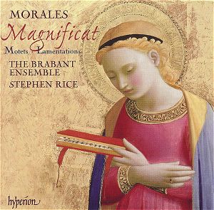 My one reservation about that Gothic Voices recording was that I wouldn’t encourage a newcomer to early music to start there: the music of Machaut and his contemporaries can sound quite alien to those not used to the idiom. Move on a century or so from Machaut to the music of Morales on this new CD and the music becomes much more amenable to the modern listener. Add to that the quality of these performances, directed by Stephen Rice who, like Christopher Page, combines his work as a don with directing the ensemble, and the excellence of the recording and you have a winning combination.