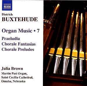 This is Volume 7 in Naxos’s complete survey of Buxtehude’s organ music, begun as long ago as 2001. Like Volumes 5 and 6, it is played by Julia Brown on the remarkable Martin Pasi organ in Omaha Cathedral. I was generally impressed with Volume 6, as I am again with this new recording. To save unnecessary repetition, please follow the hyperlink to that earlier review.