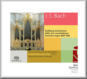 That brings us to this recording, made in the Hofkirche Dresden, on one of the most beautiful pipe organs ever made. Gottfried Silbermann, much admired by J.S. Bach, constructed it in 1755. It miraculously survived World War 2 and was restored to its former glory in 2002. This recording makes a glorious showcase for the many colours that it yields.