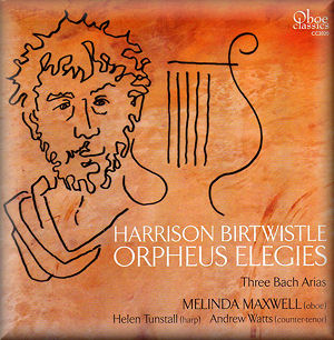 Orpheus Elegies are a set of mostly short pieces, various in atmosphere, but sharing similar sonorities. The instruments are given equal weight in terms of sheer music. The harp has an inevitably ancient or timeless association whatever notes it plays, creating a backdrop of gentle sonority which is expressive, non-percussive, simultaneously tonal and atonal in Birtwistle's hands. The oboe has principally lyrical, expressive lines as well as some angular interjections. A work of long gestation, part of the creative process with this composition was discussion about the multiphonics and effects available to an oboist. These are used sparingly, heightening certain moments without being decisive to the character of the piece as a whole. The voice, a counter-tenor, sounds natural in this context, well supported by the harp, and meeting with the oboe as a family member rather than some kind of antagonist. This is not the kind of music from which you will be taking humming tunes, but you will take away something which will stay with you and hopefully enrich and enhance your literary and musical repertoire of experience. It takes time and a number of hearings, with text, to get a grip of the inner meaning of these Elegies, but the first impressions are not of 'difficult' music by any stretch. Enigmatic yes, and filled with complicated meaning and message, but so is any good poem, and you'd want to read one of those more than once if you are anything like me.