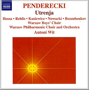 The Naxos Penderecki series has produced some fine discs, among them a thrilling Te Deum and Hymne an den heiligen Daniel (review). As before Antoni Wit and his Warsaw orchestra are the driving force. I won't pretend Utrenja is an easy listen - it isn't - and although it's not uniformly inspired it is one of the composer's key works. As such, it really does deserve a wider audience.