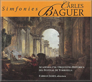 Acadèmia 1750, as the period instrument orchestra is now known, was formed for the Music Festival of Torroella de Montgri. They play stylishly and enthusiastically and are well recorded. The very helpful booklet in Spanish and English with the disc concludes by remarking that Baguer’s works “enjoyed the favour of this contemporaries and today they can be heard everywhere”. That may be true in Spain I fear that it is scarcely the case elsewhere at present, but perhaps this well played and presented disc will help to rectify this. I certainly hope so as it has left me curious to hear more of his works. Perhaps one of the specialist organ companies might oblige with a selection of his organ music. In the meantime this disc has given me great pleasure.