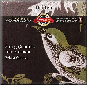 I cannot quite recall when I first heard the Three Divertimenti for string quartet. Yet these early works – written originally when Britten was twenty years old - have always impressed me. The present work is a later revision of a suite of “sharply defined character movements” called Alla Quartetto Serioso: Go play, boy, play: the subtitle was taken from Shakespeare’s The Winter’s Tale. There were to have been five movements, however only three were completed as part of that score. Interestingly, an Alla Marcia reappeared in the ‘Parade’ movement of Les Illuminations and an Alla Romanza exists as a sketch. I do not know if this has been recorded. The work was not well received being greeted with “sniggers and pretty cold silence”. In February 1936 the composer revised the music as the Three Divertimenti.  The opening March was extensively revised – complete with a new glissando figure. The Waltz must surely be one of the composer’s most charming confections. Finally the Burlesque is a technically difficult but ultimately rewarding ‘toccata’.