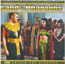 This fabulous score, gargantuan in every way, was scored for an orchestra of over 90 players and a choir topping 80; the music rarely ceases, for the most part, progressing in a  continuous flow. Tiomkin’s massive score for Land of the Pharaohs was never released on LP or CD. At last we have this premiere album that comprises the complete score meticulously assembled from the original studio masters.  The film itself was something of disappointment. The opening scenes were magnificent but with the appearance of Joan Collins as the wilfully evil and ambitious Princess Nellifer, who coverts Pharaoh Khufu’s (Jack Hawkins) throne, the film rapidly falls apart. Tiomkin’s memorable exotic score is full of colour and very imaginative. Highlights include ‘Pharaoh’s Procession’ with its underscoring of blaring brass and percussive rhythms that accompany the on-screen procession bands with authentic-looking Egyptian long trumpets and drums; and ‘Song of the Builders’, with Tiomkin’s brilliant underscoring scenes showing the cutting and transporting along the Nile of the huge stones used to build Khufu’s great pyramid.