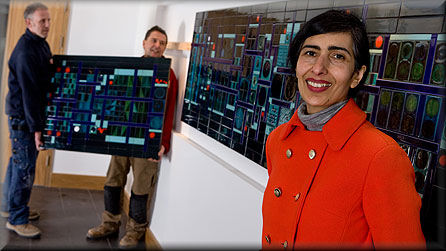 Safle, whose mission is to promote, advocate, develop and implement art in the urban and rural public realm, throughout Wales and internationally, were delighted to co-ordinate and manage the work in partnership with BBC Wales. Safle’s Executive Director, Wiard Sterk said, “It has been a pleasure for Safle to work with the accomplished ceramicist, Lubna Chowdhary and BBC Wales on such a distinctive and interesting project. Lubna’s artwork has an elegance and depth, which befits its location and the memory of Alun Hoddinott. I’m sure it will be admired by audiences entering Hoddinott Hall.”