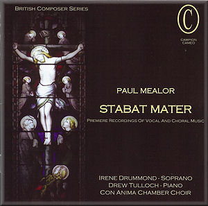 Paul Mealor was appointed Principal Conductor of the Con Anima Chamber Choir in 2008, so although no conductor is named here we can safely assume it is he. As a conductor of amateur choirs myself, I can confidently state that most of my colleagues, and not a few young composers, will be rather jealous that he has this particular choir at his disposal. They make a truly beautiful sound with only the occasional trace of harshness in the women’s voices. Balance and blend are very good and there are some excellent men. There are difficult moments in some of the music on this disc - soprano lines can be punishingly high, for example - and tuning is not always faultless. Attack can lack unanimity too, especially when a phrase begins with a difficult chord. It’s perhaps unfair to cite individual soloists, but I do salute the soprano Jillian Bain Christie, credited with the solo part in Let Fall the Windows of Mine Eyes. There is a certain fragility about some of the other soloists drawn from the ranks.