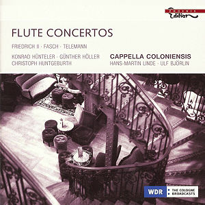 This is a reissue of recordings of baroque flute concertos. They were made between 1978 and 1988. Frederick the Great, King of Prussia was a keen musician and a pupil of Quantz. He was a flute player/composer, and had his own 17-piece chamber orchestra. He wrote four flute concertos, with two of them currently readily available. I first encountered these concertos through German flute player Jost Nickel, who has made his own fine recording of the C major concerto. This is an enjoyable and well-written work, which has energy, bright melodies and impressive technical displays. It is heard here played by Konrad Hünteler on a baroque flute. The playing is good, and although the flute is quite quiet in the balance the sound is unforced and well phrased.