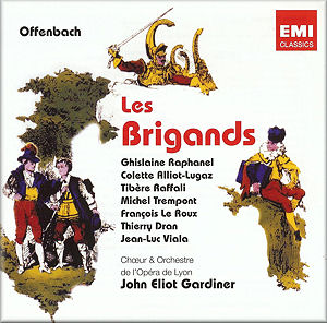 Gardiner’s performance dates from towards the end of his time as director of the Opera de Lyon and, while it may not be as widely loved as his recording of Chabrier’s L’Etoile, it is every bit as successful.  There is a wonderful feeling of ensemble about the performance and you very much get the feeling that this was a true company effort without imported superstars.  The performers are all extremely well suited to their roles, led by the roguish, throaty tenor of Raffall as Falsacappa.  He clearly lives and breathes this music, as do the female leads.  Perhaps Ghislaine Raphanel is a little too edgy as his daughter Fiorella, failing to convey the winsome youthfulness of this character.  Mezzo Colette Alliot-Lugaz, however, is outstanding in the breeches role of Fragoletto, her dark, fruity tone providing a rich contrast between the two lovers: compare their two entrance arias (CD 1, tracks 7 and 11) to see what I mean.  All of the other soloists are excellent, but you don’t come away from this set marvelling at star performances: instead it’s the sense of ensemble that sticks with you.  Take, for example, the Act 2 trio (CD 2, track 8) where the voices blend with each other as if they’ve been doing this sort of thing for their whole lives.  Marvellous!  The chorus work is fantastic too, be they roguish bandits or incompetent Carabinieri, and the finales of each act, where each of these elements comes together, are quite splendid.  Unsurprisingly in view of their conductor, the orchestra plays with transparency and clarity which really opens up the textures, nowhere more strikingly than in the clipped, bright opening.  Recorded sound is EMI’s best, clear and immediate.